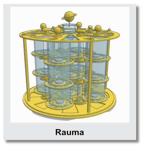 Es sollen Objekte entstehen, bei denen ausschliesslich Räume bewegt werden. Eine Uhr zeigt die Zeit, eine Rauma den Raum.