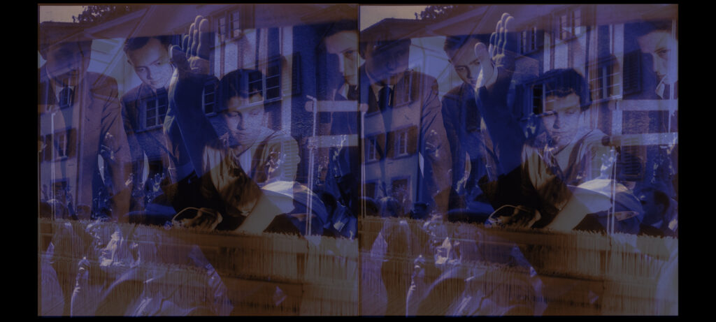 Die Bilder wurden an getrennten Orten und zu unterschiedlichen Zeitpunkten aufgenommen. Man bringt so Raum und Zeit von zwei völlig unterschiedlichen Situationen „zusammen“.