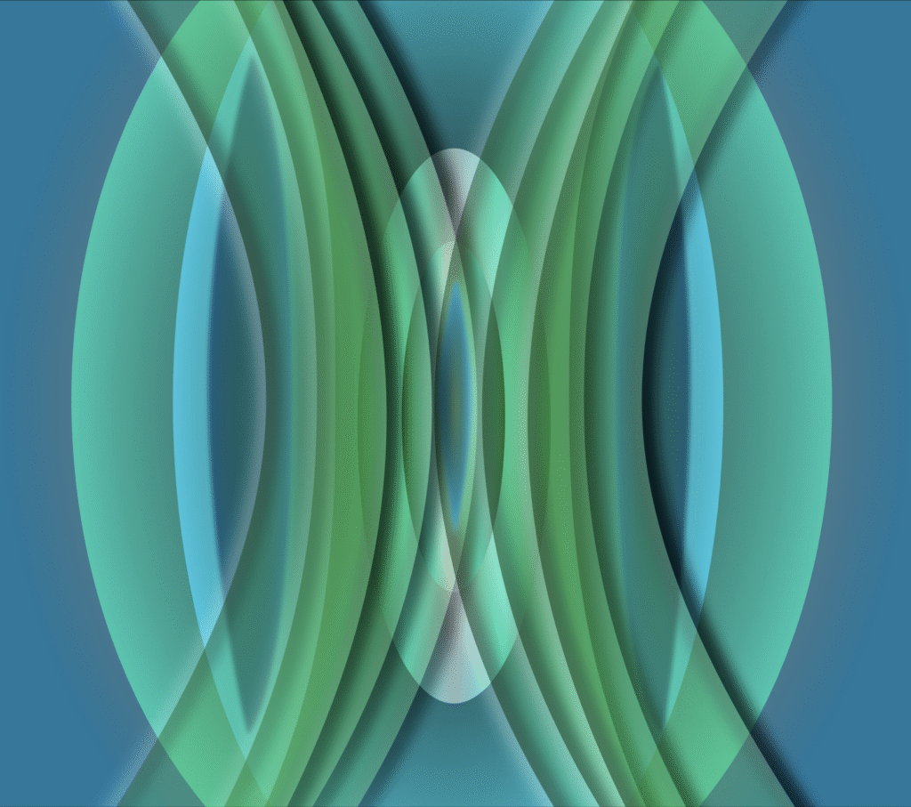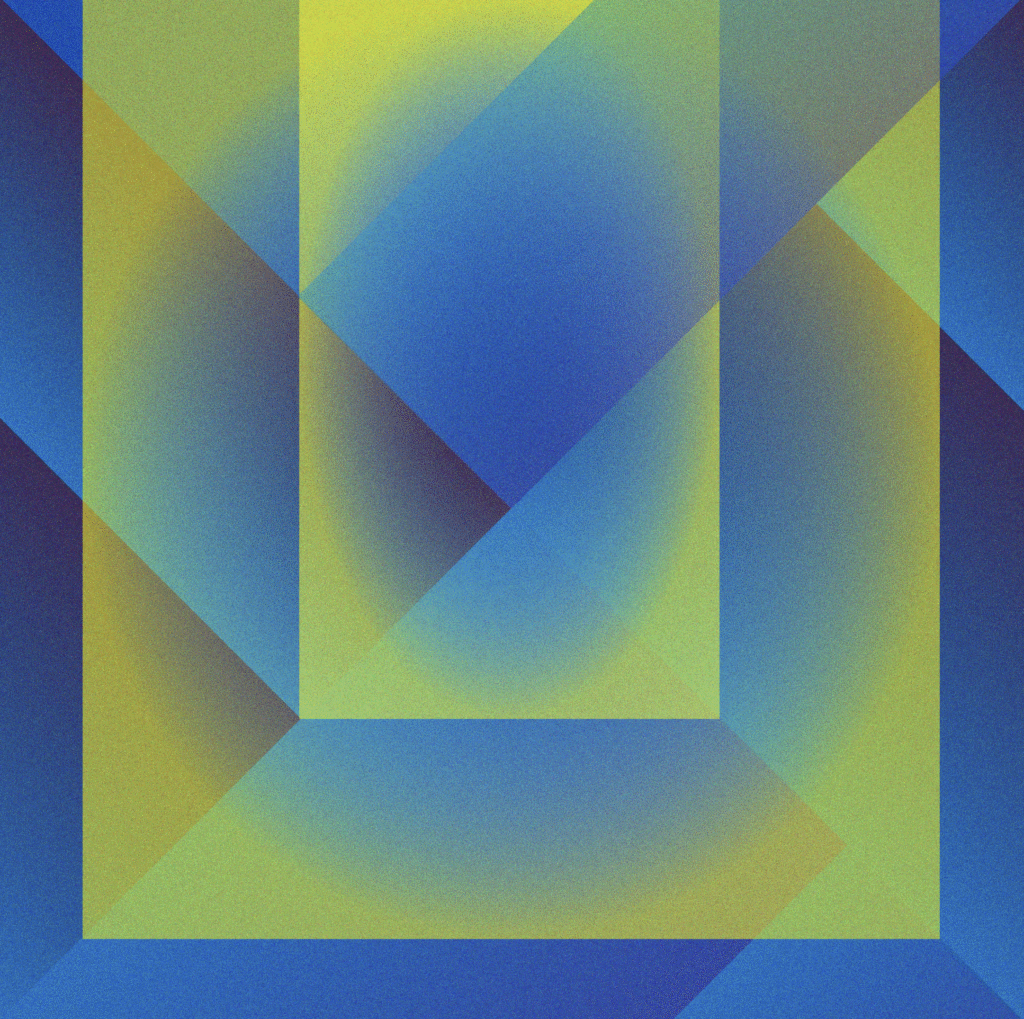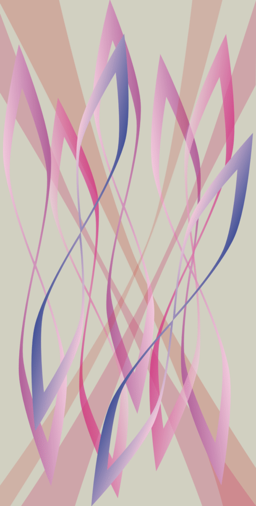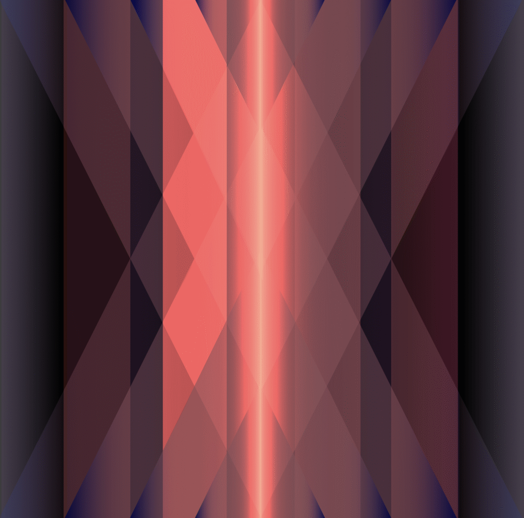 Autobinäres Raumbild, das auf leicht verschobenen und verschieden gewinkelten farbigen Acrylplatten basiert, welche fotografiert, halbtransparent gestellt, 180 Grad zu einander und ineinander kopiert wurden. Ein seitlicher Verschub pro Bild – jeweils einmal nach rechts und dann nach links ergaben dann die drei Bildvarianten.